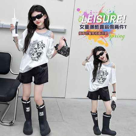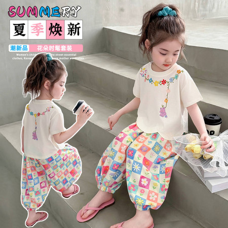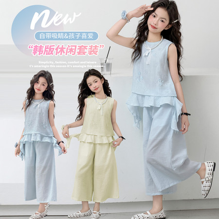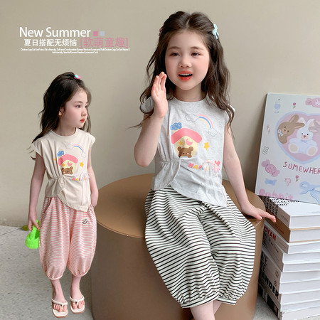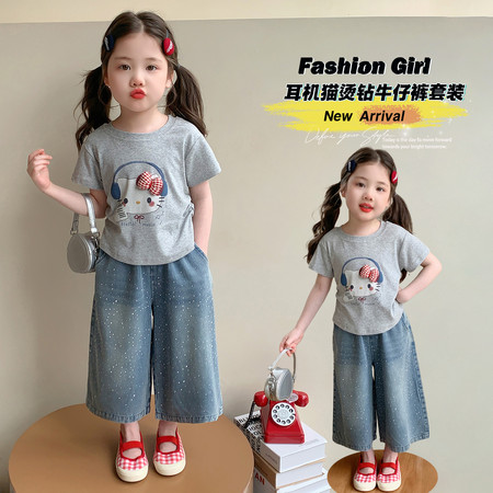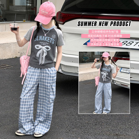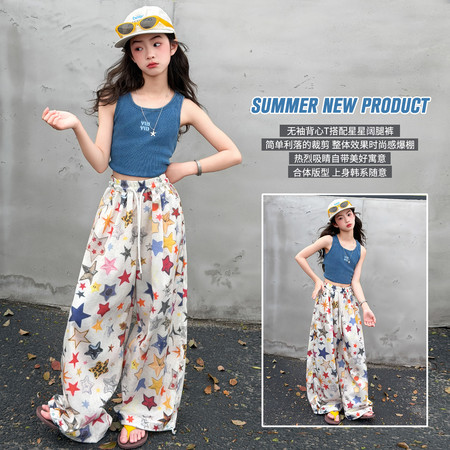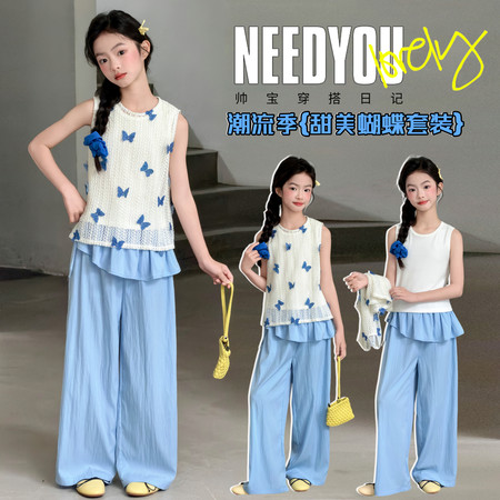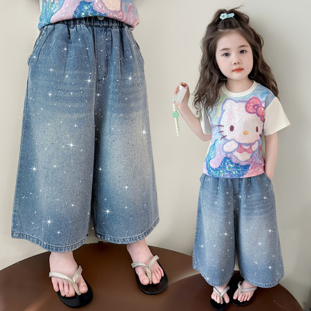 陶陶果童装&6572前面蝴蝶水钻薄款阔腿裤