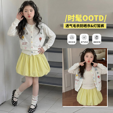 皖伴贝童装&2026-14白色裙子配V领针织套装