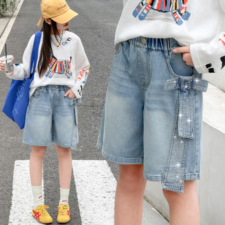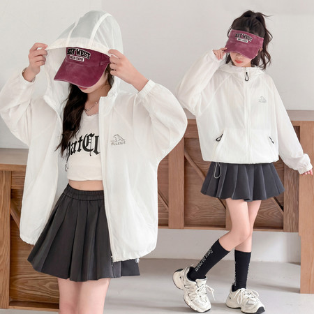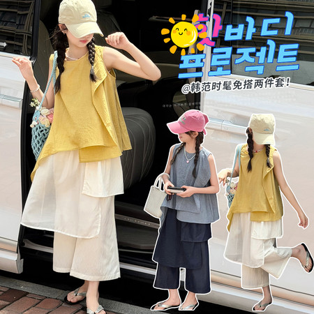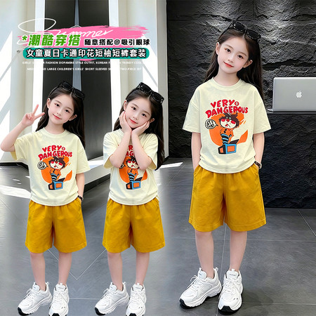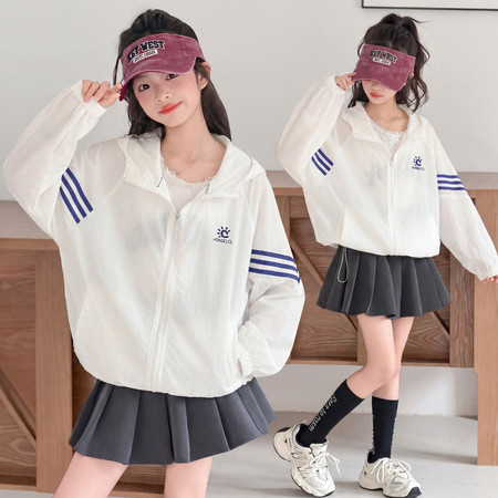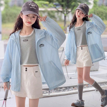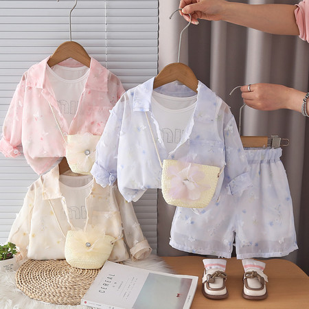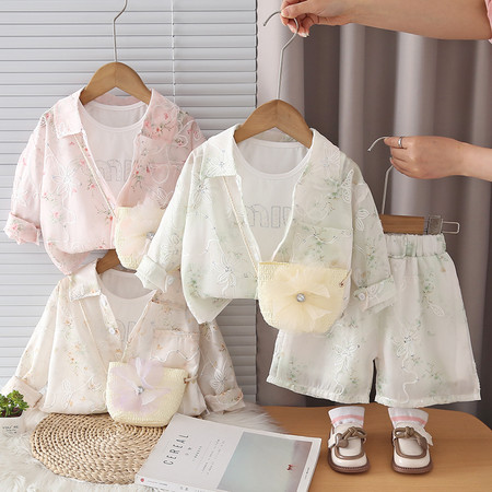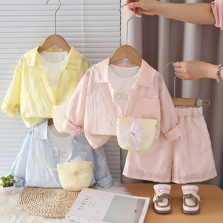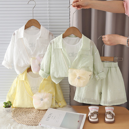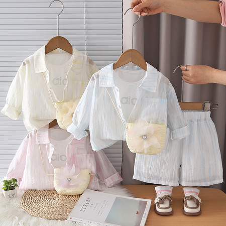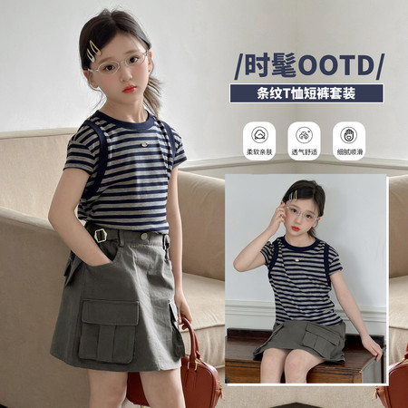 优米&Y6350女童条纹防晒罩衫短裤套装