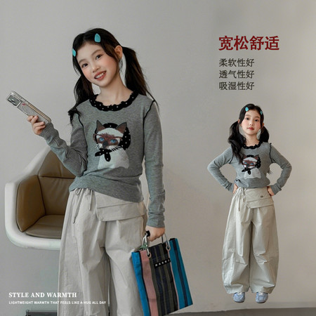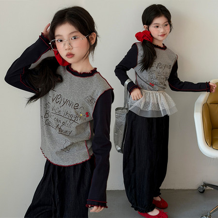 陶陶果童装&6359后袋绣爱心阔腿裤
