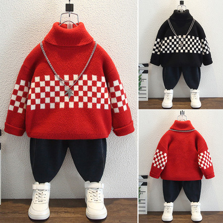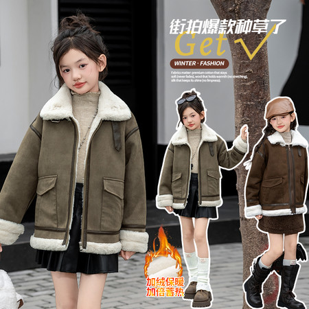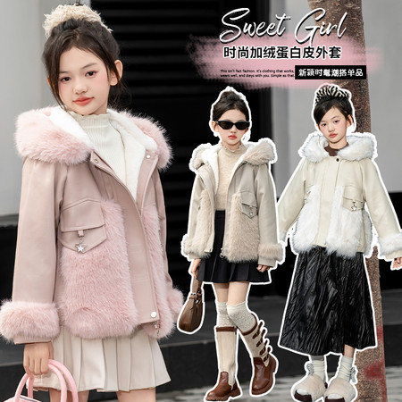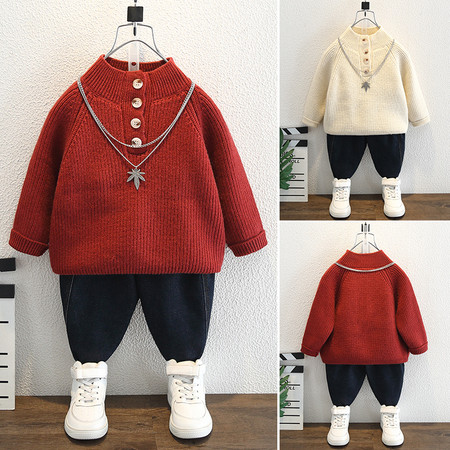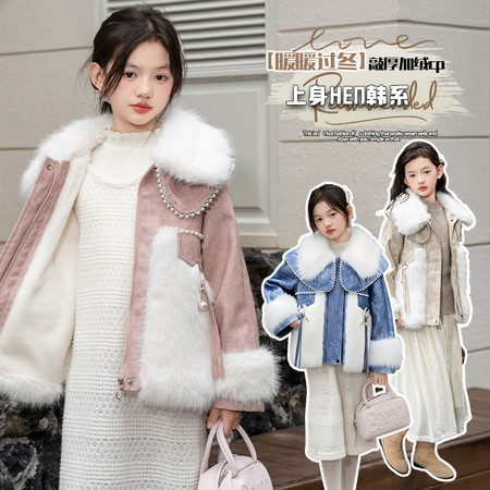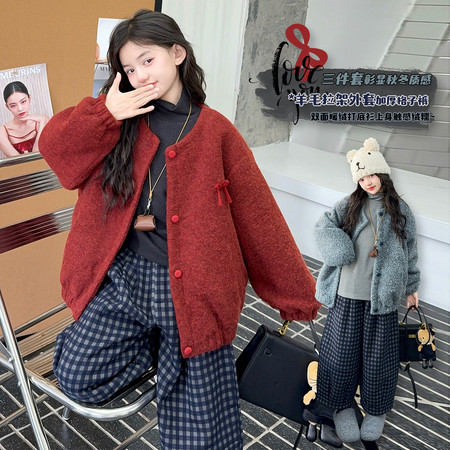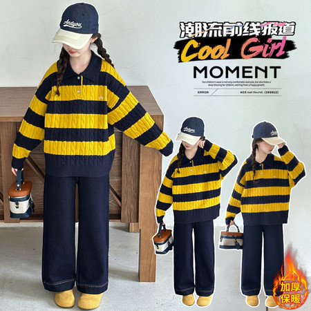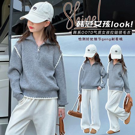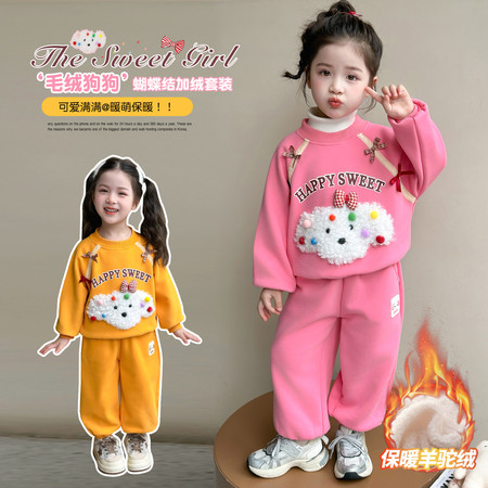 爆版熊&B59-女童糯米羊绒针织绣花套装
