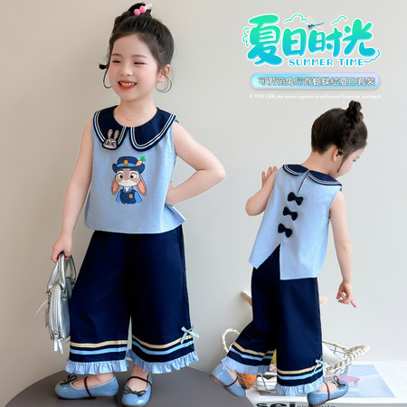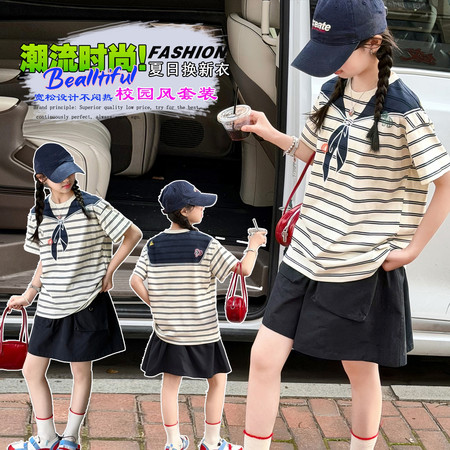 米咔精灵&66086海军领弯刀裤休闲韩系套装