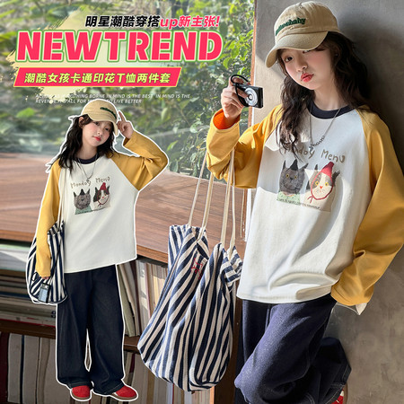 苹果甜甜&6502款KT猫条纹卫衣牛仔裤套装