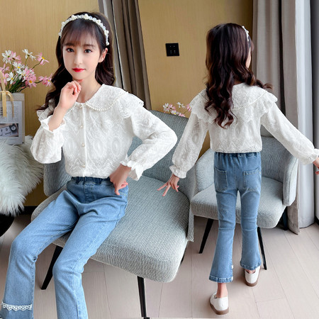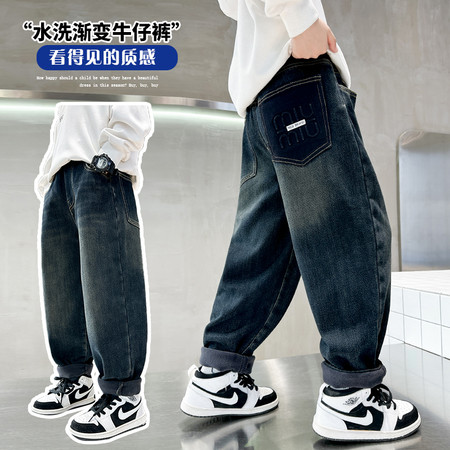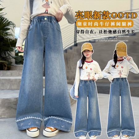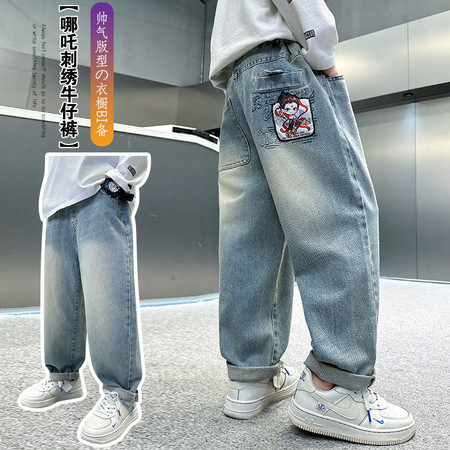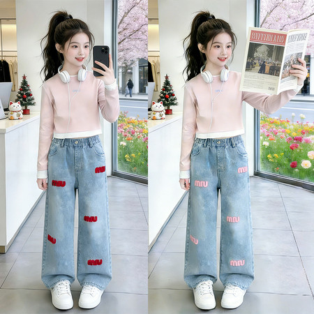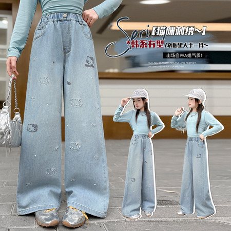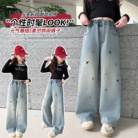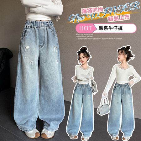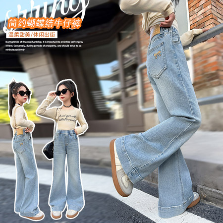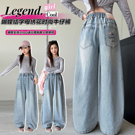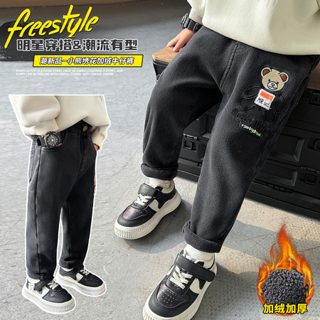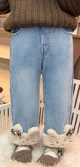 D219蝴蝶结卡通刺绣加绒牛仔裤