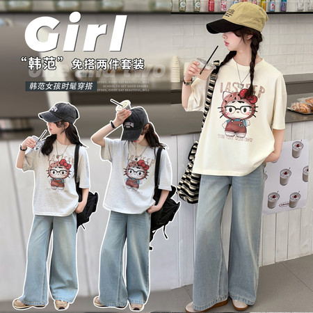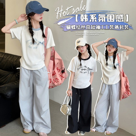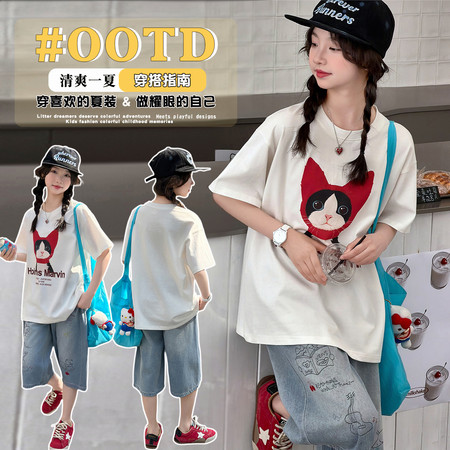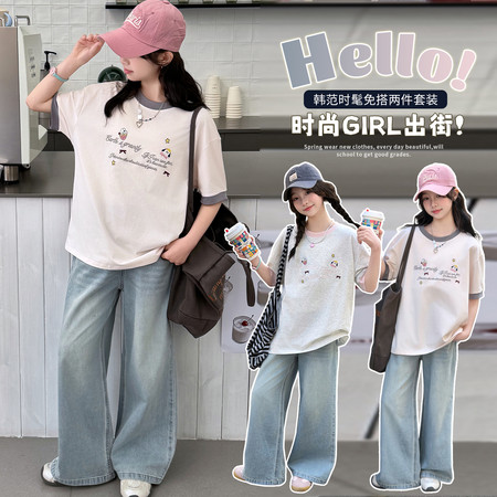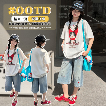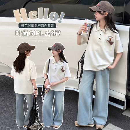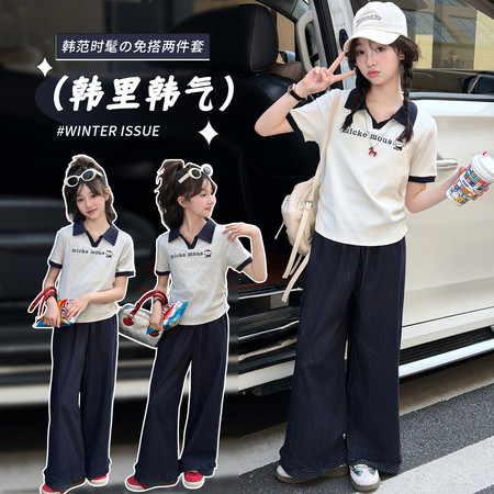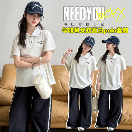 米咔精灵&66052小V立领字母短袖休闲日常套装