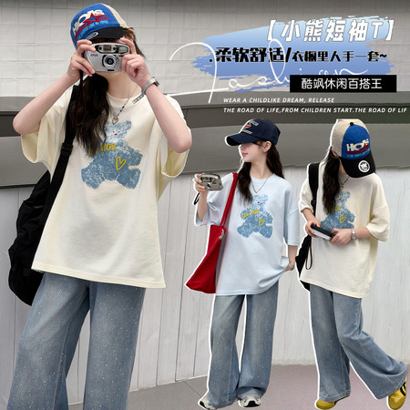 苹果甜甜&6631款蝴蝶结牛仔外套白裙套装