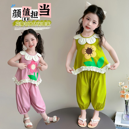 小妖乖&橘色花苞无袖套装