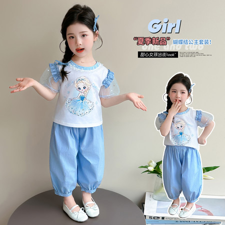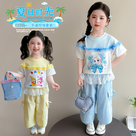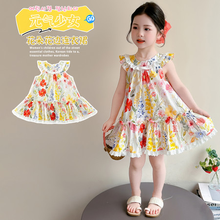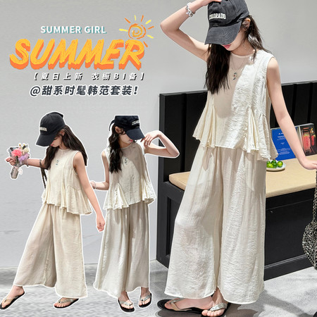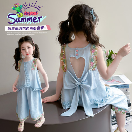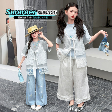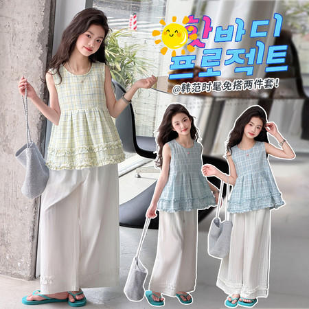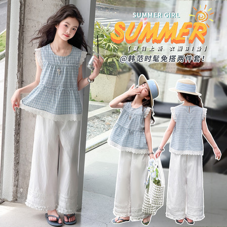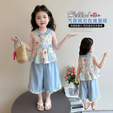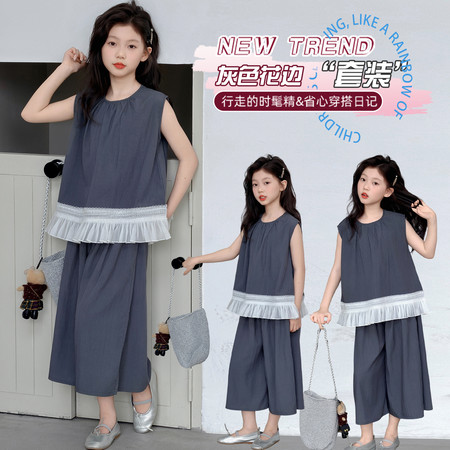 漂亮优贝童装&2960款背心连衣裙蕾丝花边阔腿裤两件套