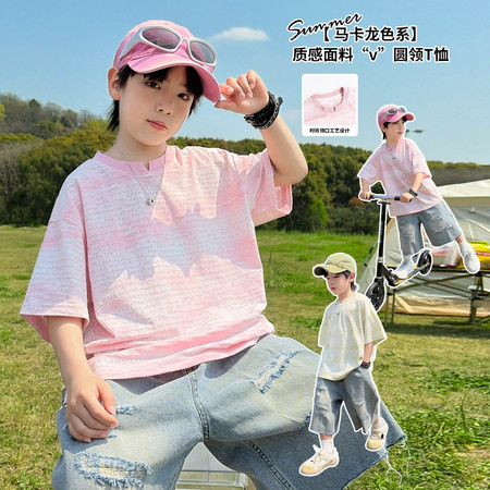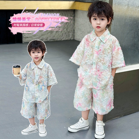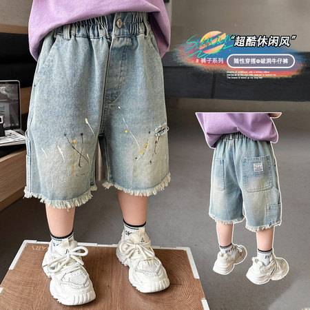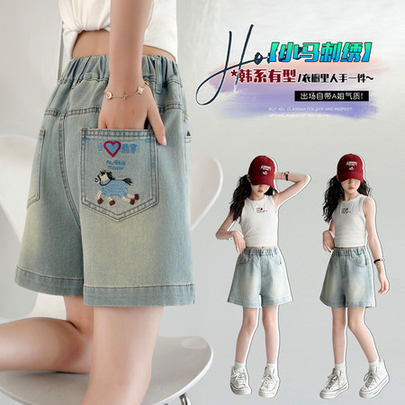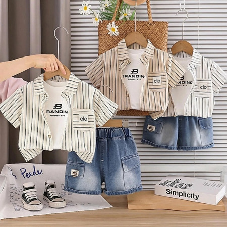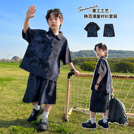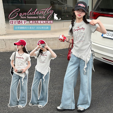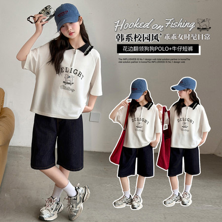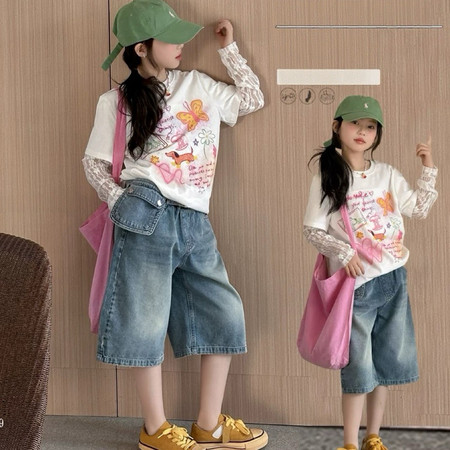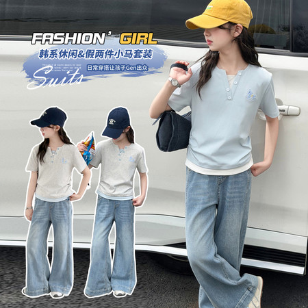 五小七&SJ8430清新晕染牛仔短袖三件套