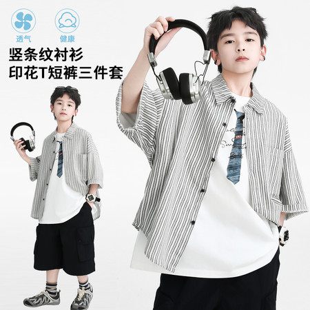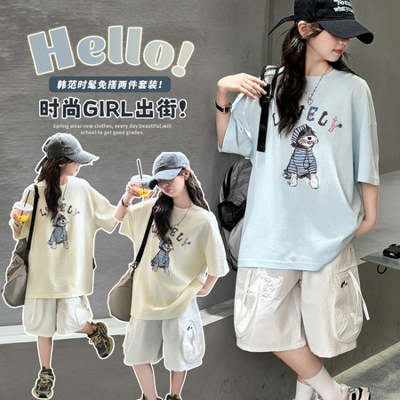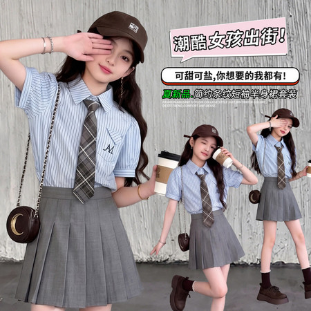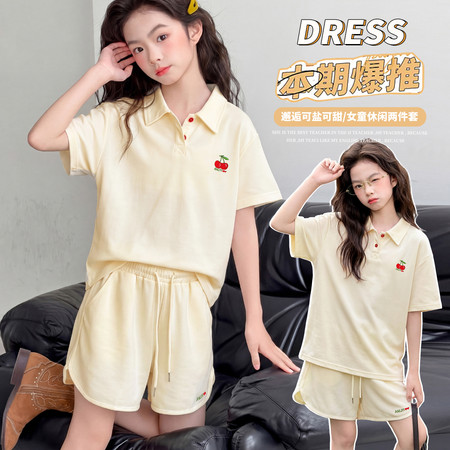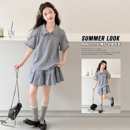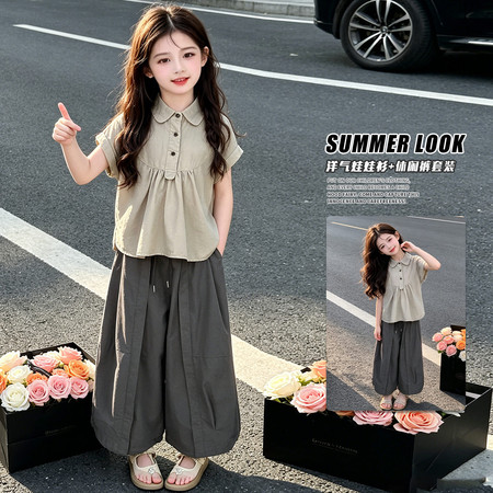 萌城杰达&2618款飞袖衬衫白短裤套装