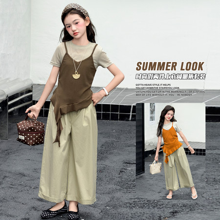 五小七&YH262252女童刺绣小花挎包防晒三件