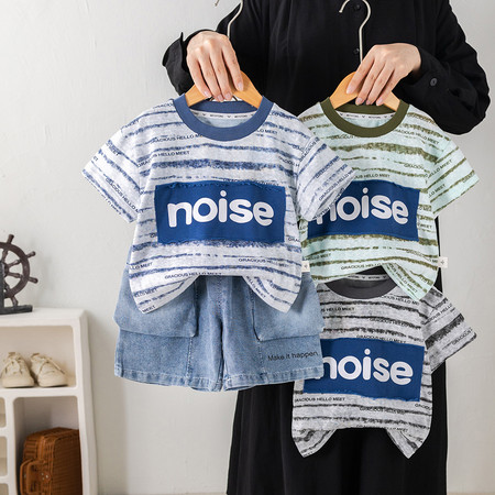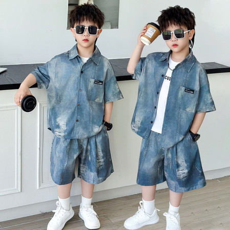 小班家&26162扎染牛仔短袖套装模特