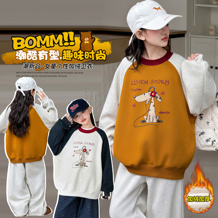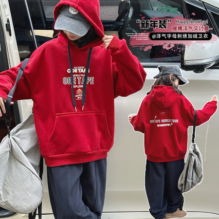 双鱼妮妮&SY-2540女童刺绣加绒红色卫衣
