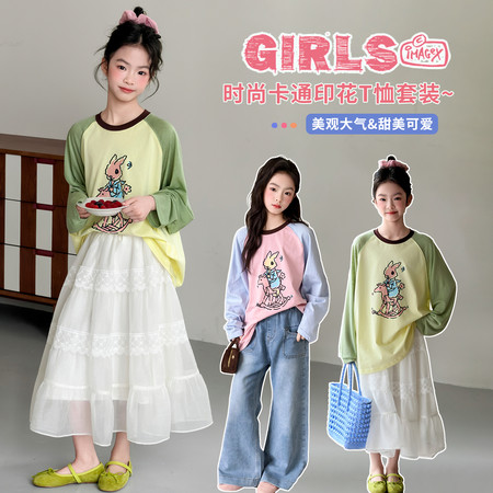 双鱼妮妮&SY-2605女童轻薄小兔子T恤套装