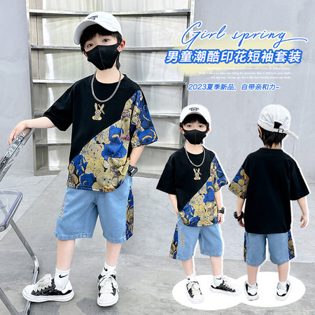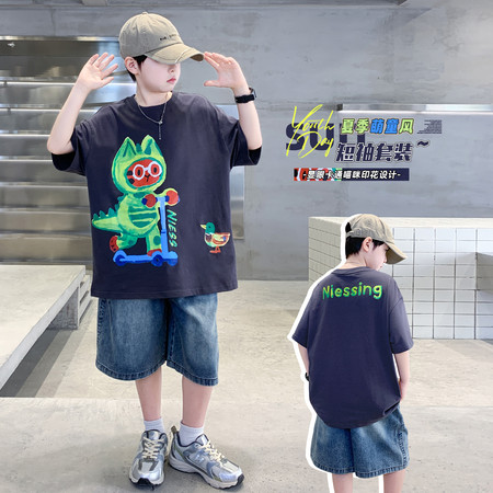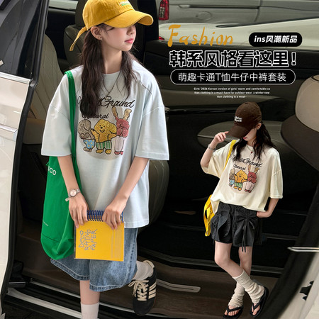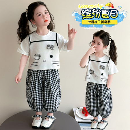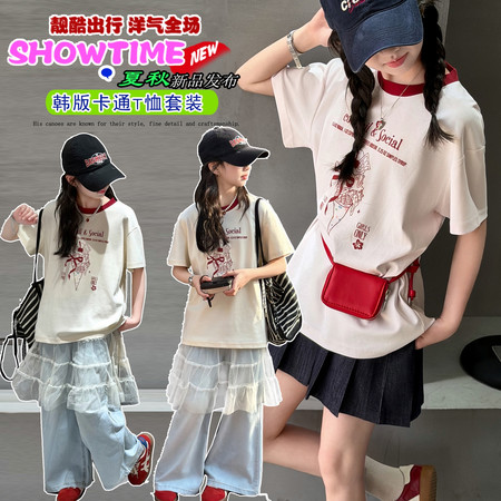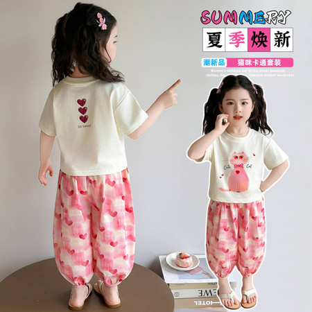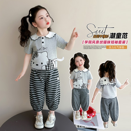 糖果小镇网供&TGXZ2606手绘滑板喵短袖T恤套装