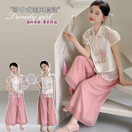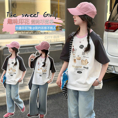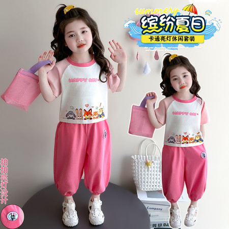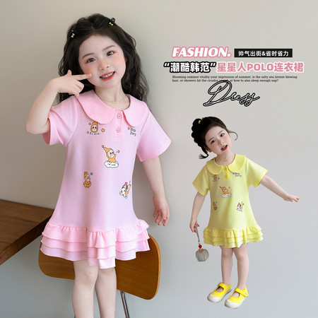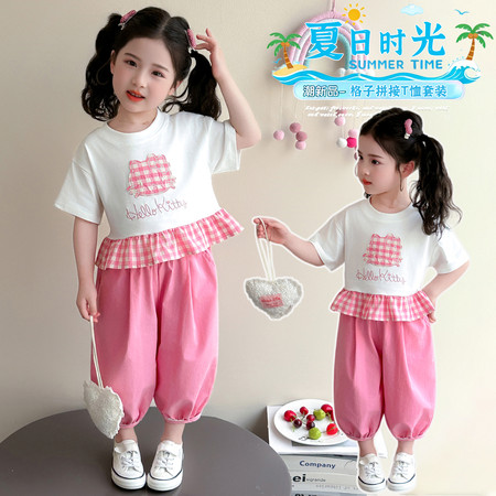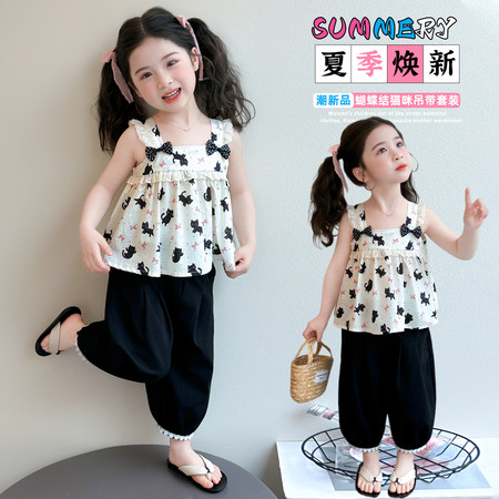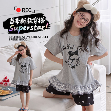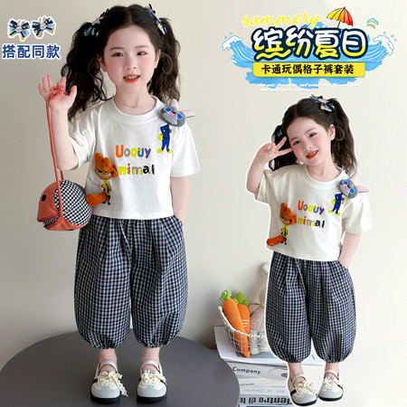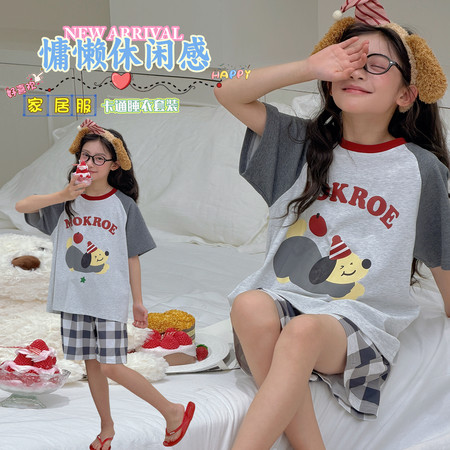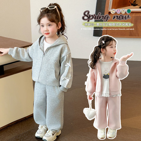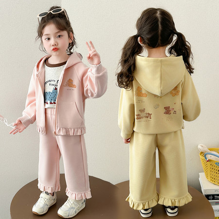 爆版熊&B816-女童宠物狗假两件拉条套装