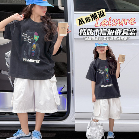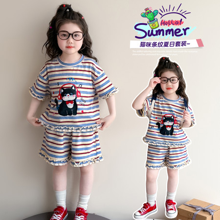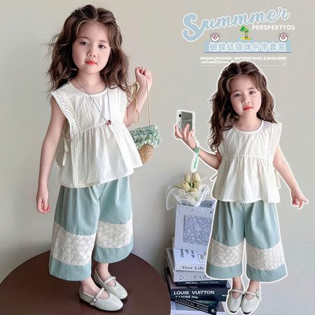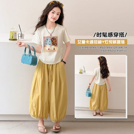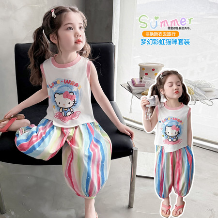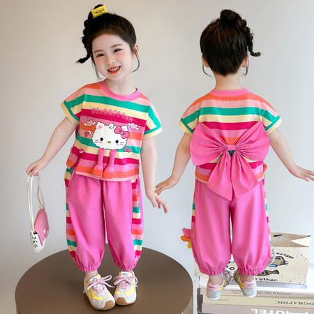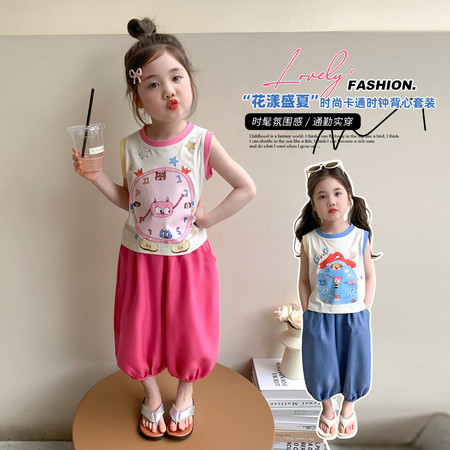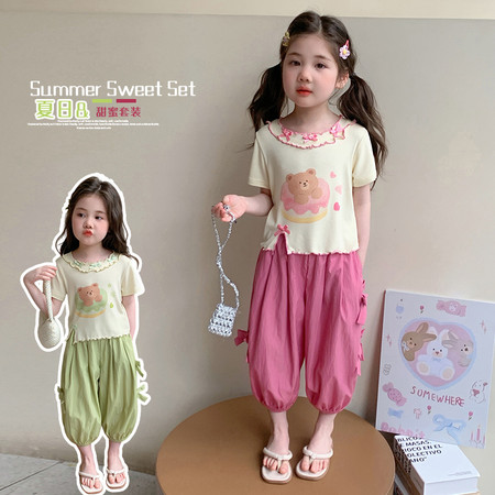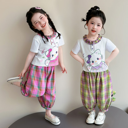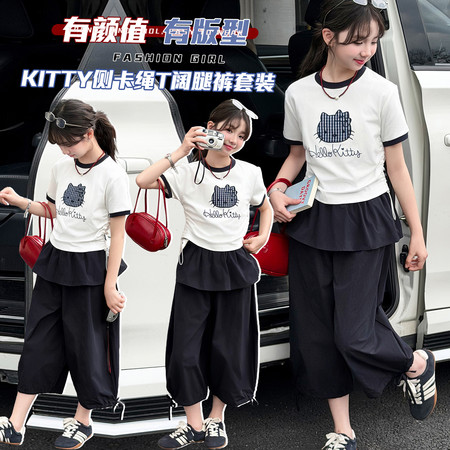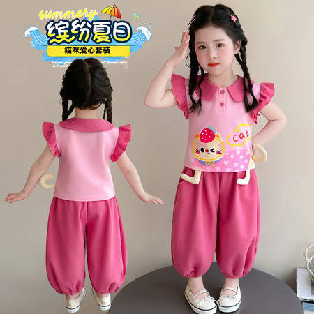 X2610彩扣猫咪灯笼裤套装
