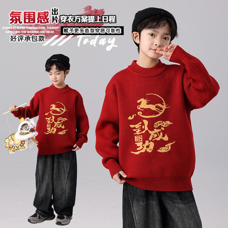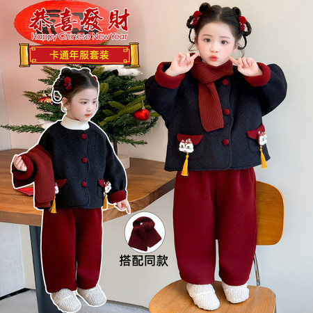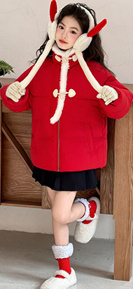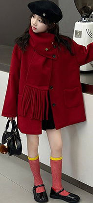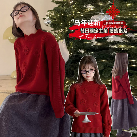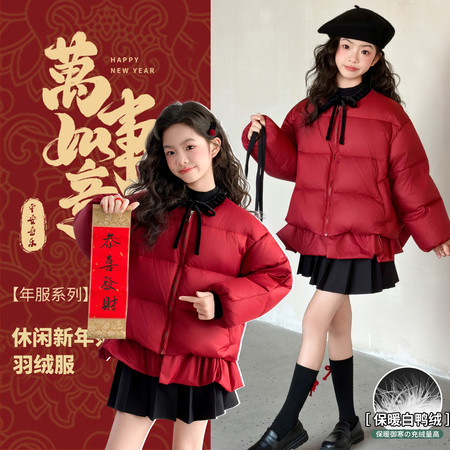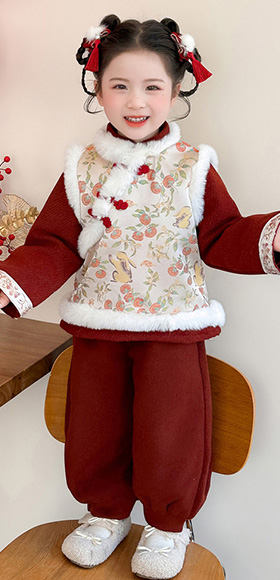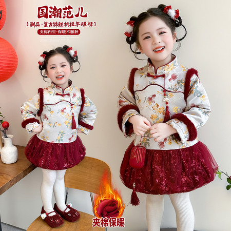 星星年华&DX04720黑色毛领红色百褶裙拜年服套