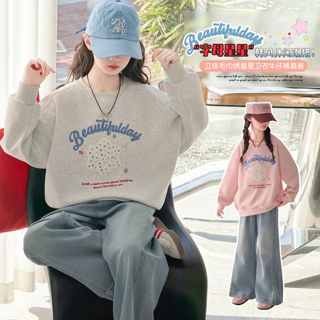 可可比熊&T2623五角星毛巾绣花卫衣套装
