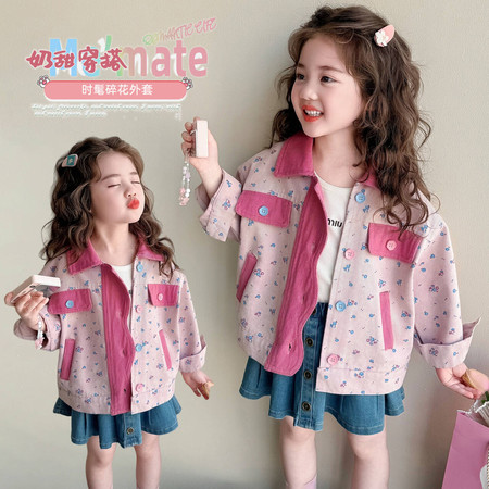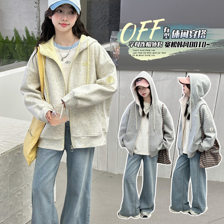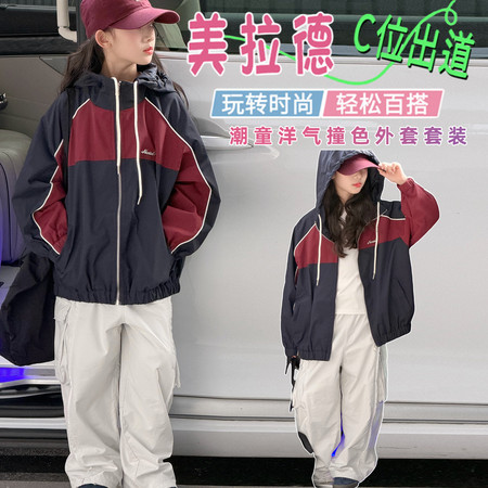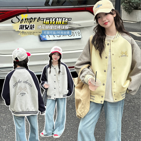 麦吉&2498拼色蝴蝶字母压花羽绒服-