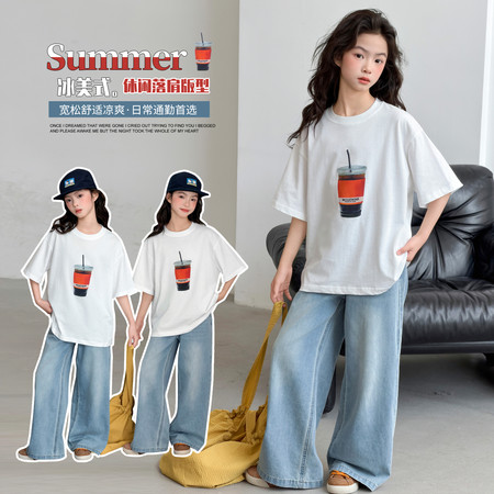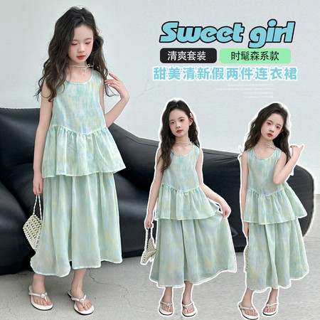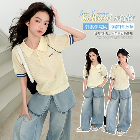 双鱼妮妮&SY-2527女童天丝不规则设计感套装