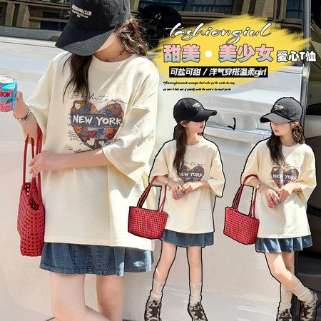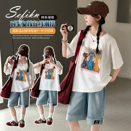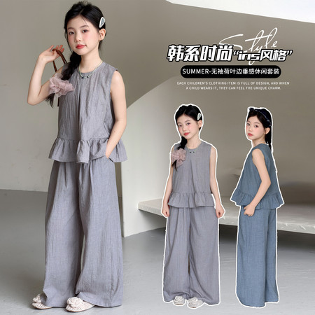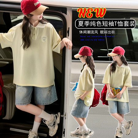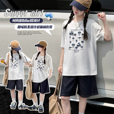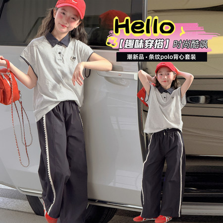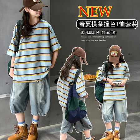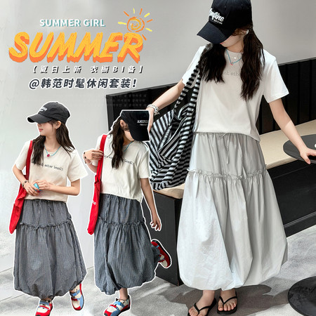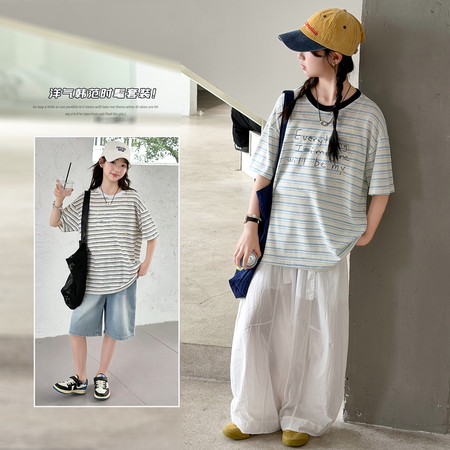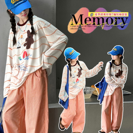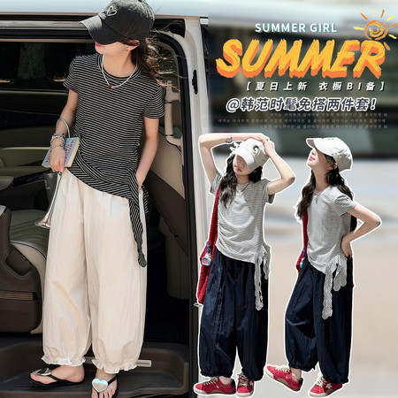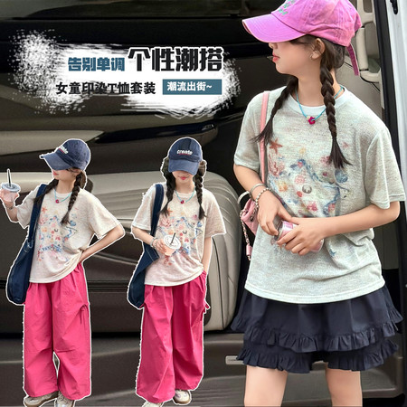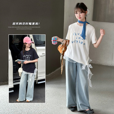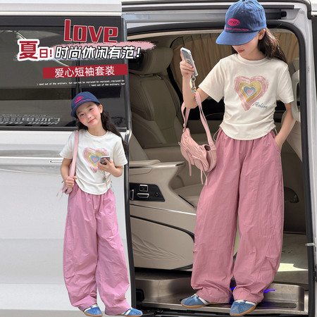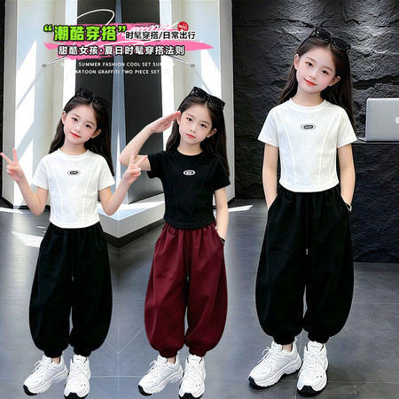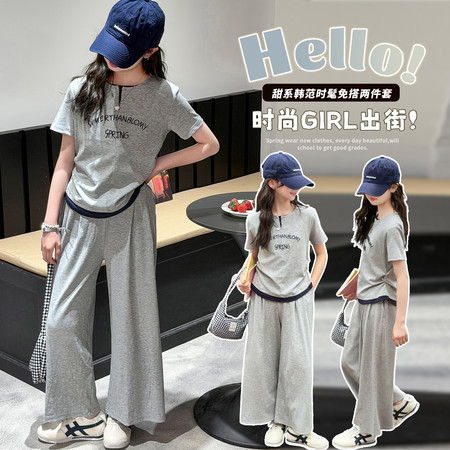 时尚芭蕾童装&26A21美式T恤阔腿裤套装