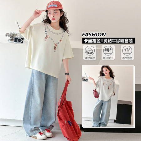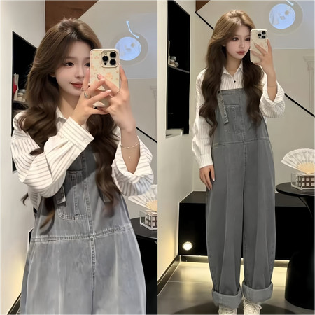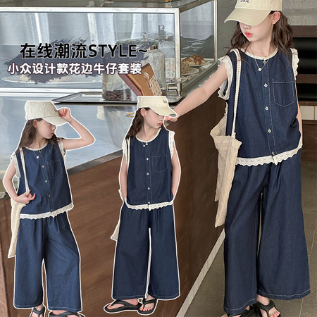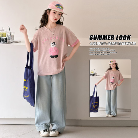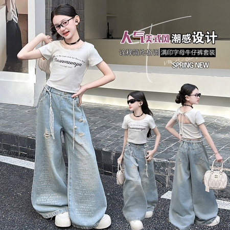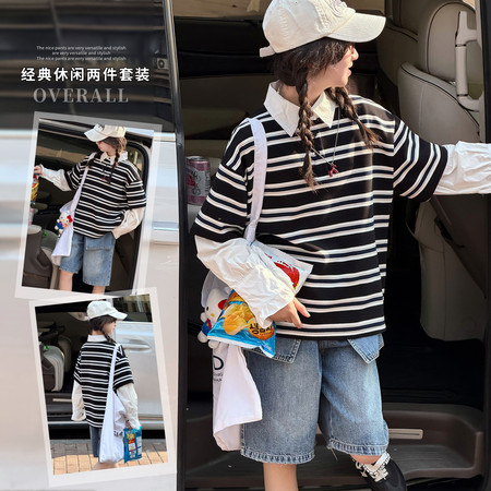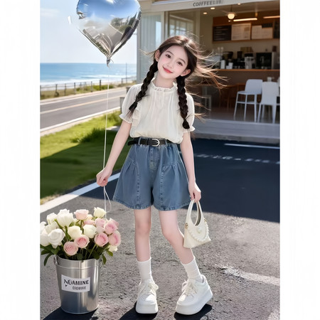 丸子家(贝壳笛)&95款花苞衬衫牛仔裤加腰带套装