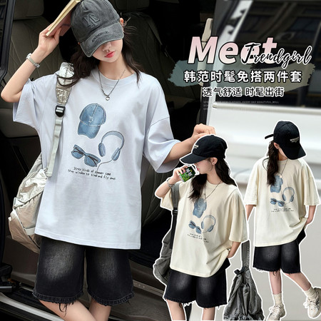 五小七&YH262213牛仔衬衫项链短袖两件套