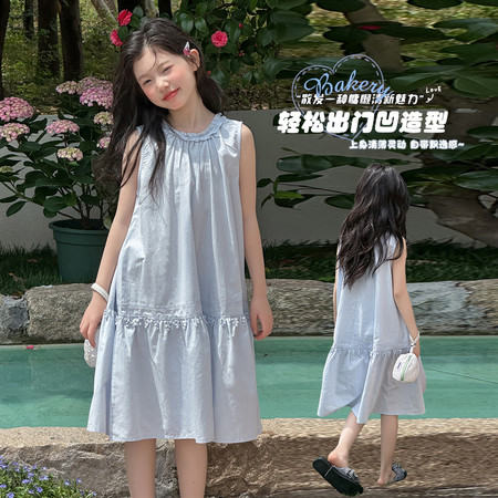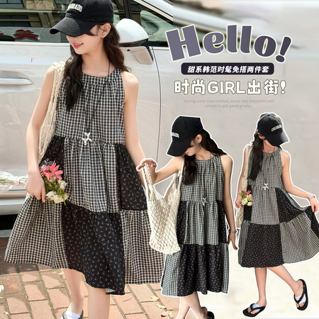 韩菓儿(甜心班纳)&A26086款蓝色格子无袖连衣裙