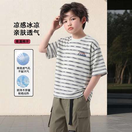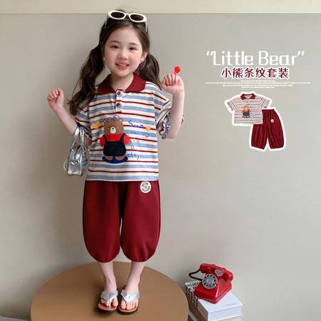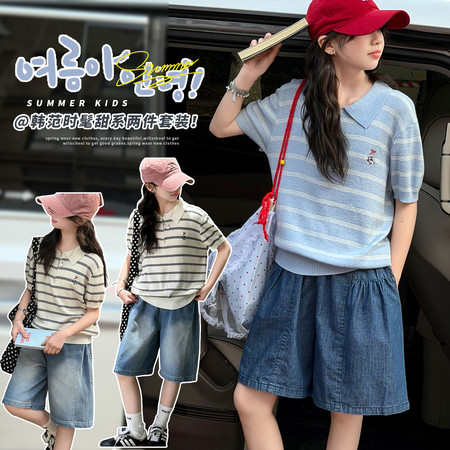 五小七&SJ8432韩系撞色条纹开衫三件套