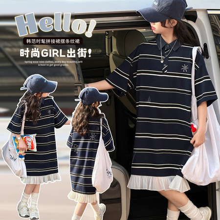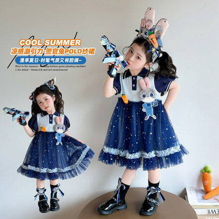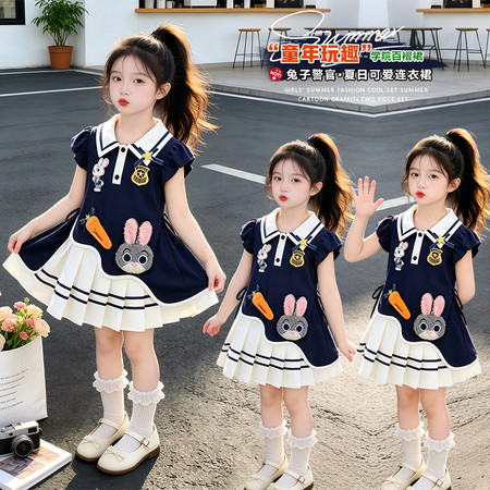 韩嘟服饰&蓝色竖条纹兔子连衣裙