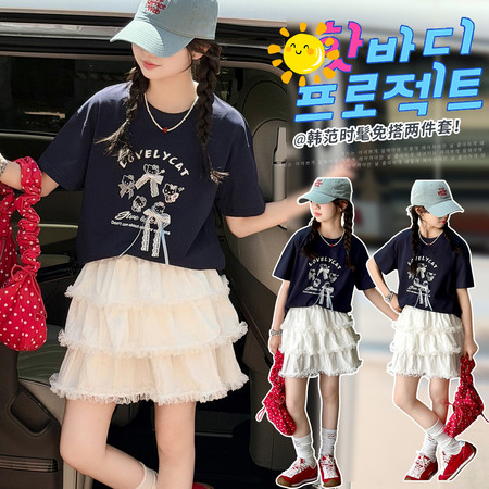 nn童装&25131---夏款半身蝴蝶马面裙套装
