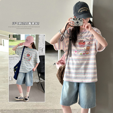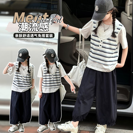 五小七&YH262254女童竖条纹挎包防晒衣三件