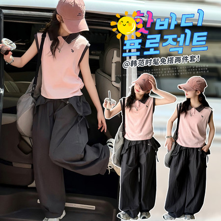 星星年华&DX04811拼接无袖白裤子套装