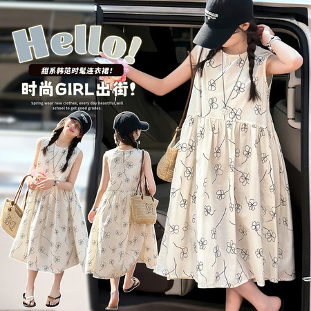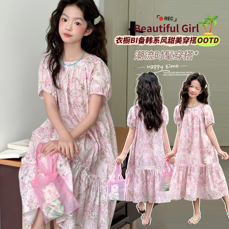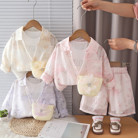 五小七&YH262256女童碎花蝴蝶挎包防晒三件