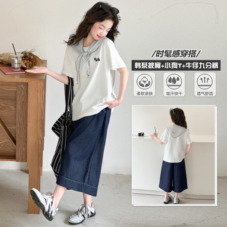苹果甜甜&6507款韩版牛仔外套灰色短袖白裙三件套