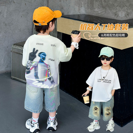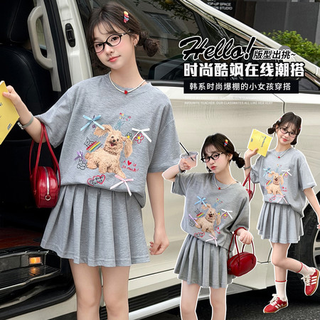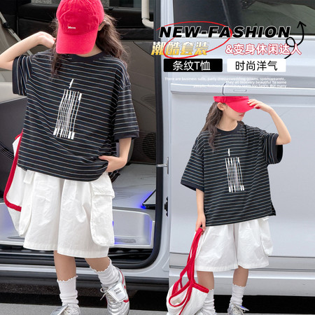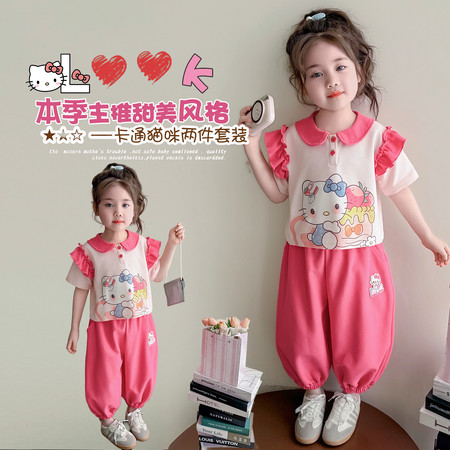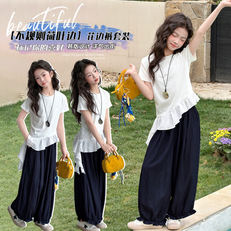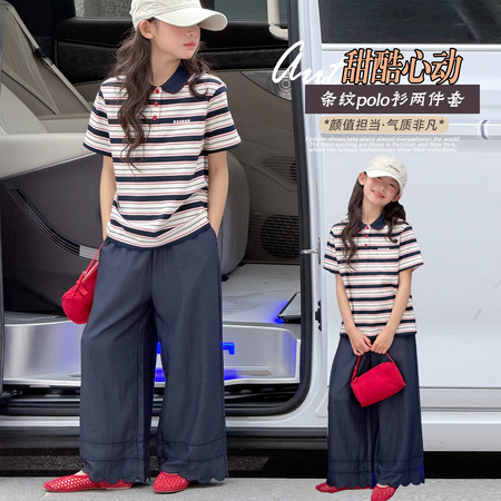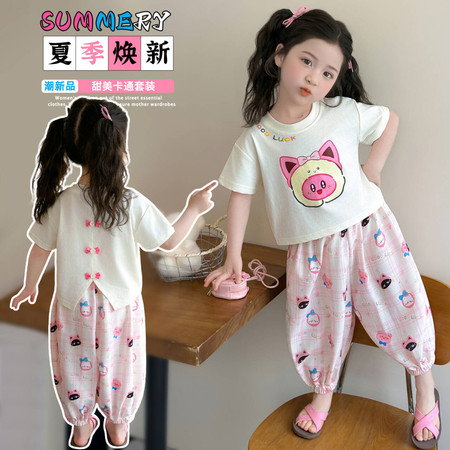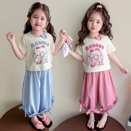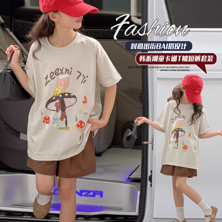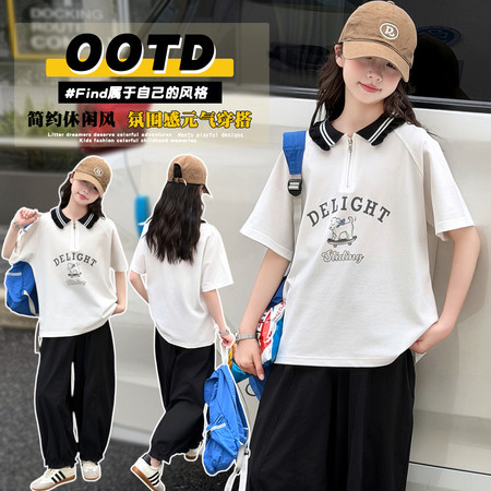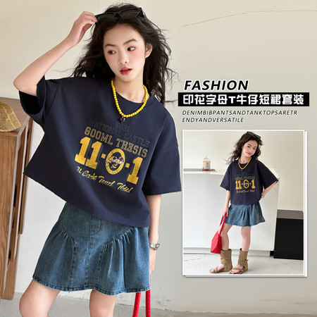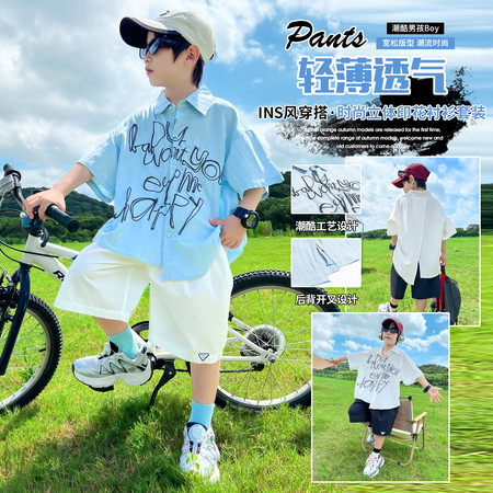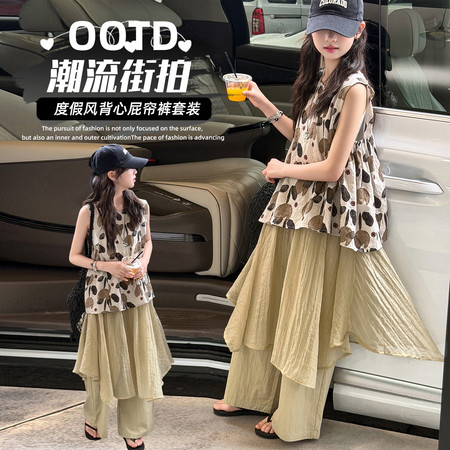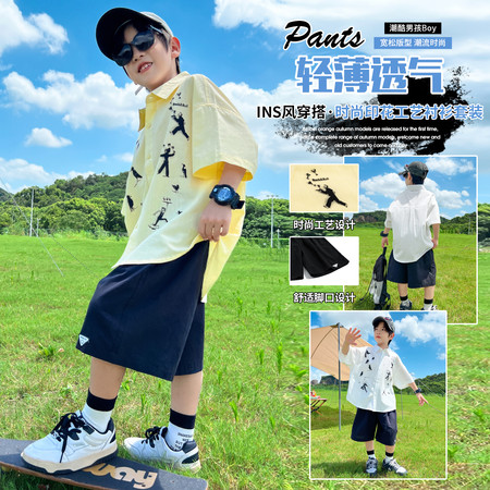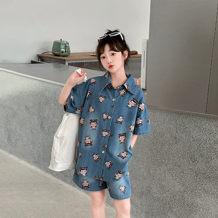 潮.尚&CS8527棉布衬衫印花宽松裤套装