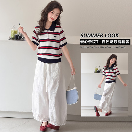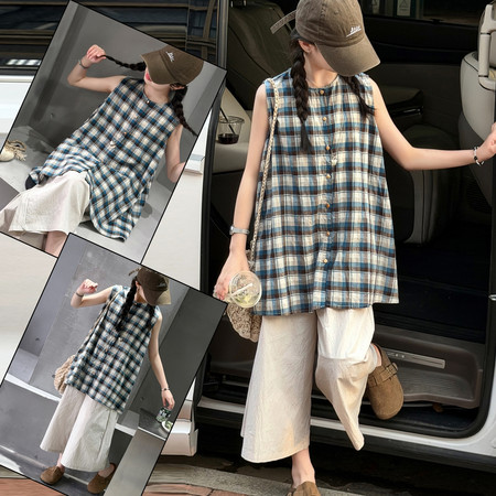 潮.尚&CS8189纯棉无袖花边衬衫套装