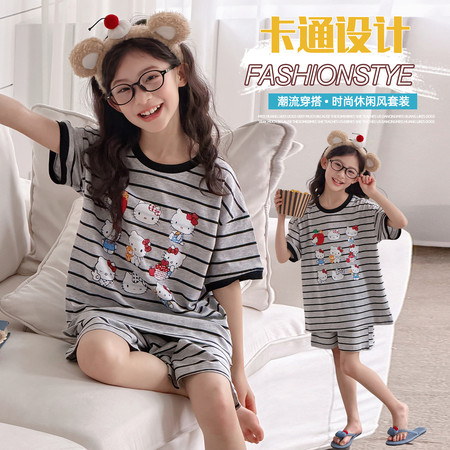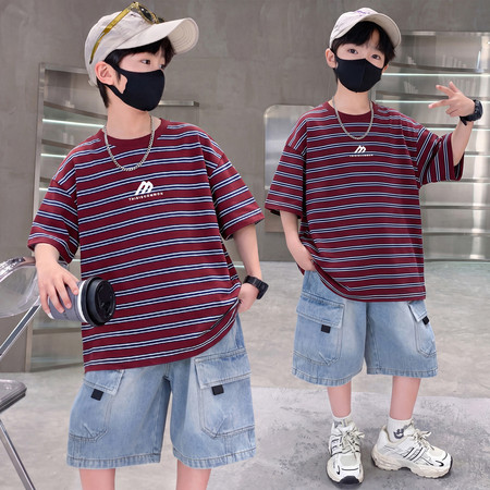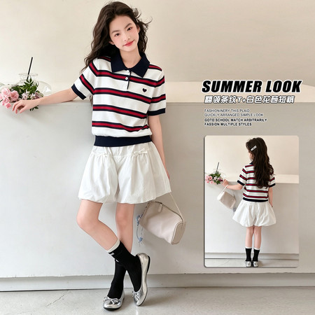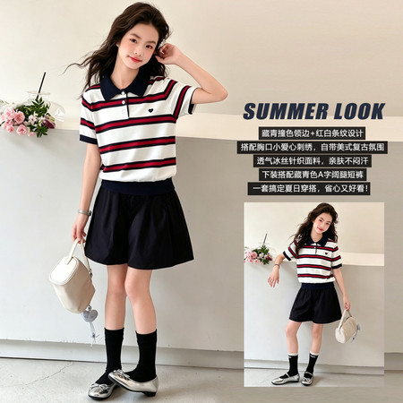 米咔精灵&66090细条纹T恤套装韩系休闲夏季清凉