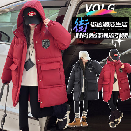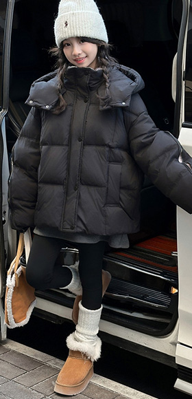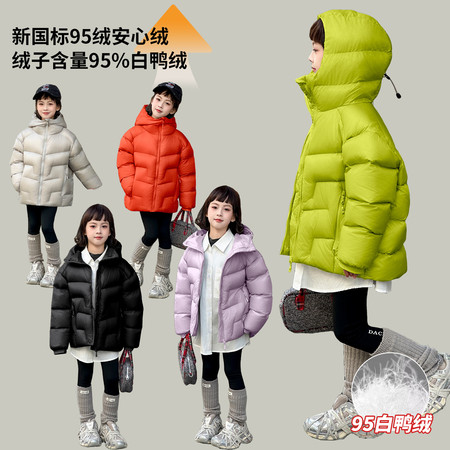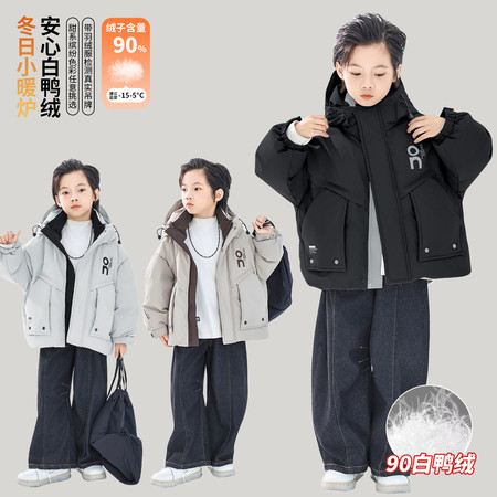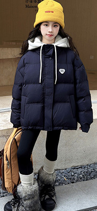 麦吉&2498拼色蝴蝶字母压花羽绒服