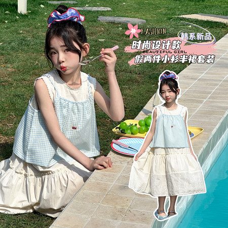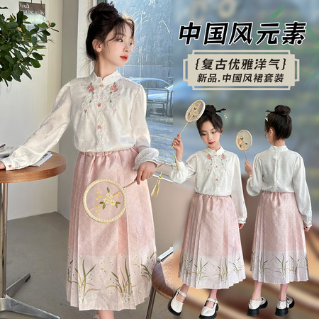 nn童装&25035---织金蝴蝶马面裙夏款套装