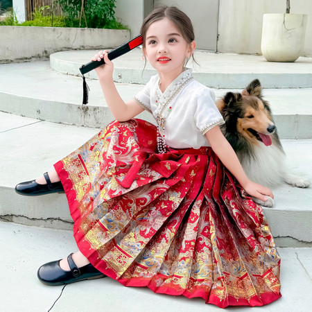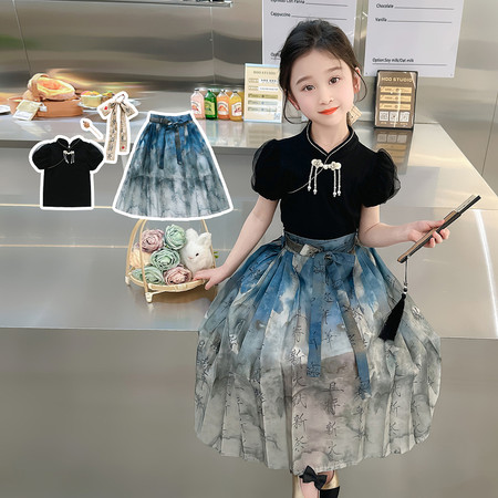 nn童装&25131--夏款半身蝴蝶马面裙套装