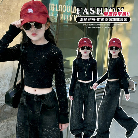 漂亮优贝童装&2773款假两件帽衫直筒裤套装