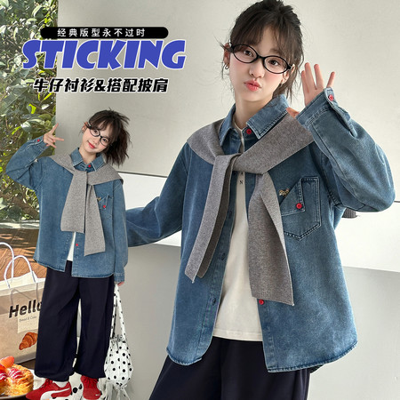 蕊蕊&R197款刺绣小马牛仔衬衫