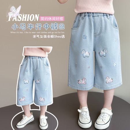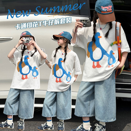 皖伴贝童装&2026-17小熊刺绣牛仔中裤套装