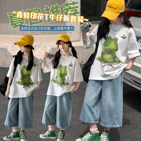 皖伴贝童装&2026-13南瓜色上衣配牛仔中裤套装
