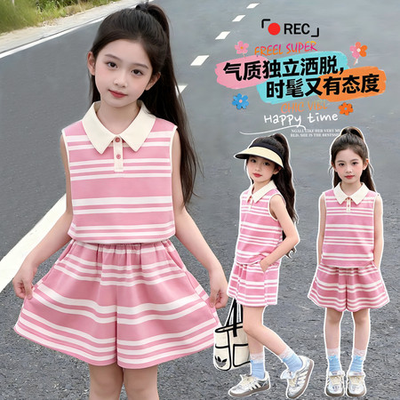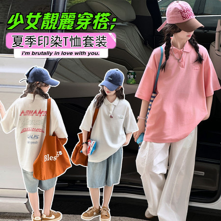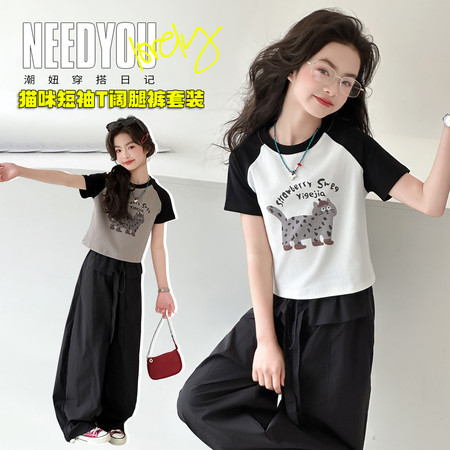 双鱼妮妮&SY-2316女童蝙蝠袖短裤甜酷风套装夏