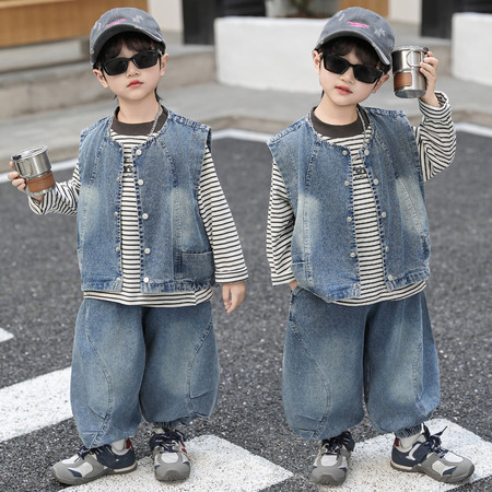 童衣童缘&26001条纹牛仔三件套