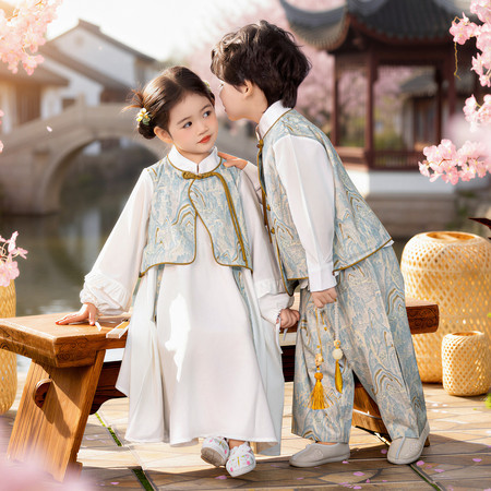 星星年华&DX07130男童纯色浅蓝牛仔套装