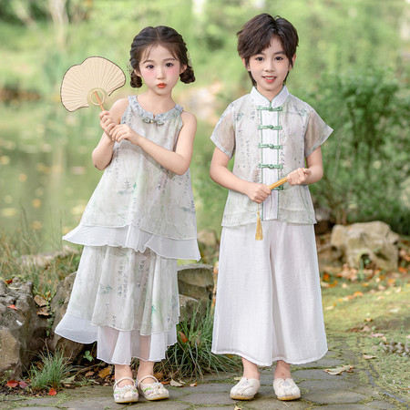 nn童装&25023--湛蓝千字文马面裙套装